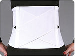 The Criss Cross Back Support has a velvet loop on one side panel and 4" elastic on the other side panel.