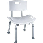 ProBasics™ Shower chair is designed for individuals who require seating support and stability when bathing or showering. It features a comfortable contoured textured seat and back. The angled legs have one-inch, easy-snap button adjustments and wide-based, non-skid feet for added sturdiness and safety..