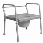 The 24-inch Extra Wide Commode comes complete with commode bucket with handle, cover and splash guard, and can function as a free standing commode, a toilet safety frame, or as a raised toilet seat with arms.