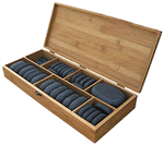 Expand your practice with our 45-piece hot stone set with cool stones. It includes a wide variety of hot stones suitable for a 60-minute full-body massage, foot massage, pressure point massage, facial and head massage and even cool therapy. These smooth stones are carved from natural basalt and packaged inside a handmade bamboo storage box. Contents: 1 X-Large Flat Ovular Basalt Stones 10 Large Flat Ovular Basalt Stones 14 Medium Flat Ovular Basalt Stones 6 Small Flat Ovular Basalt Stones 2 Contoured Ovular Facial 2 Miniature Pressure Point Basalt/Deep Tissue 8 Toes 2 Small Ovular White Marble Stones (for cool therapy).