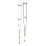 The Drive Medical Aluminum Crutch with Accessories provides stability and durability. Double extruded center tube provides strength to weight-bearing area. Push-pin adjustment makes it easy to adjust crutch height in 1" increments. Non-skid, jumbo size vinyl contoured tips provide excellent traction.