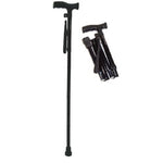 The Roscoe Medical Adjustable Folding Cane comes with an easy-to-use, one button height adjustment mechanism with locking anti-rattle ring allowing for quick, safe fitting.
