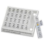 7 Day Pill Organizer is used to keep medications organized and safely dispensed. Each day of the week is clearly marked in large type on the compartment covers to make it easy to read and identify. Each compartment cover is also indicated with Braille additional identification ease. Each daily compartment for the 7 Day Pill Organizer is easy to open and close. Manufactured by Mabis DMI, the Pill Organizer is made of plastic and has a small profile so that it will not be in the way. Economically priced, the 7 Day Pill Organizer is ideal for multi pill daily needs. The Pill Organizer is dishwasher safe.