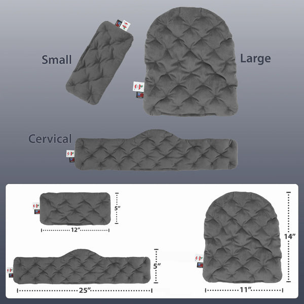 These packs are available in various sizes accommodate most treatment areas. Use the small pack on elbows, arms, wrists, hands, ankles or feet. The cervical pack is an ideal neck wrap that can be beneficial for various types of neck injuries and conditions, including muscle strains, cervical spondylosis, whiplash, tension headaches, and arthritis. The large pack is an ideal solution for more substantial areas of the body such as the back, shoulders, knees, or legs. These packs are also ideal for menstrual cramp relief when applied to the lower abdomen or lower back.